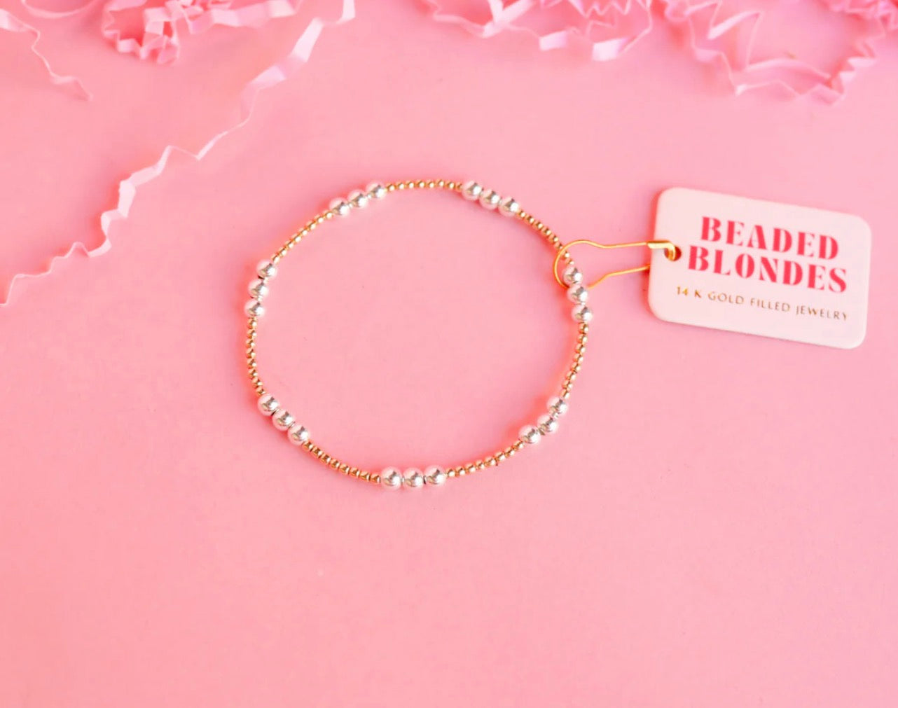 • 14 K gold filled, sterling silver & elastic string