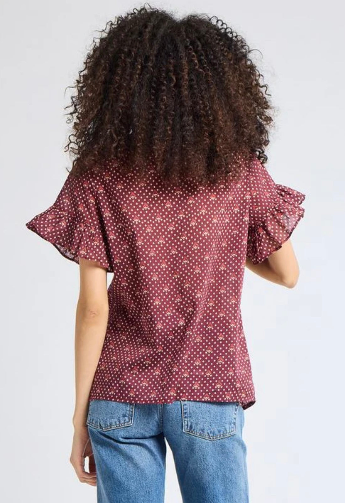 The Vanessa is our new favorite everyday top. With cascading ruffles that frame the face and flattering bell shaped sleeves we've never loved a short sleeve top more.